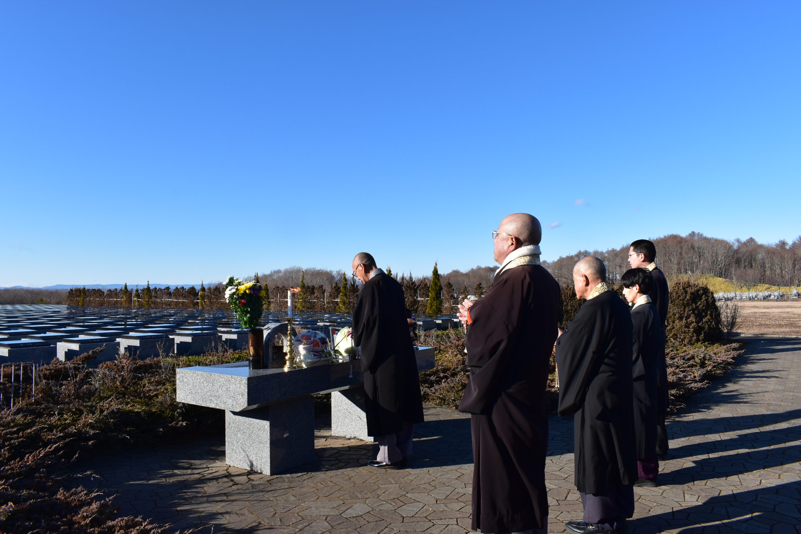 TOP 公苑からのお知らせ 合同供養祭執り行いのご報告 公苑からのお知らせ 2025年11月29日 その他 合同供養祭執り行いのご報告 永代供養付き墓所(永代合祀供養塔・合葬墓・天樹葬・ひだまり・永代供養墓)にて、 本日、合同供養祭 を執り行いました。 こちらで眠られているお一人おひとりのお名前を読み上げ、これまでと変わらぬ感謝と祈りを静かにお届けいたしました。 青空に包まれる中、 「この場所が、いつまでも心安らぐ場でありますように」 そんな願いを胸に手を合わせる、穏やかな時間となりました。 今後も、皆さまにとって安心してお参りいただける場づくりに努めてまいります。 http://ryoubokouen.com/cms/wp-content/uploads/2025/12/合同供養祭1.mp4 一覧へ戻る